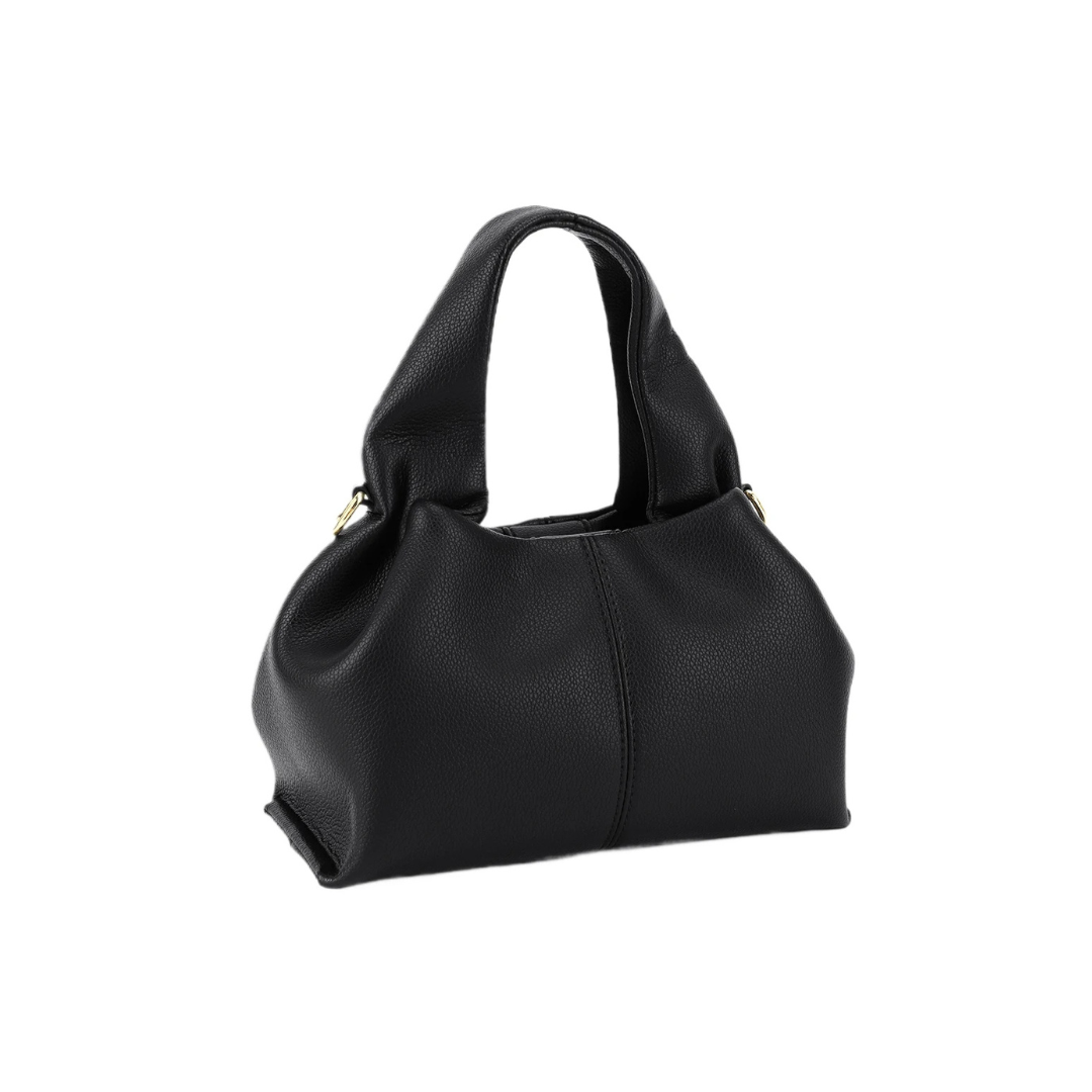 Entdecken Sie unsere luxuriöse schwarze Handtasche, die Stil und Praktikabilität mühelos vereint. Gefertigt aus hochwertigem Kunstleder mit feiner Narbung, beeindruckt sie durch ihre schlichte, aber moderne Silhouette und die goldfarbenen Akzente, die zeitlose Eleganz ausstrahlen.